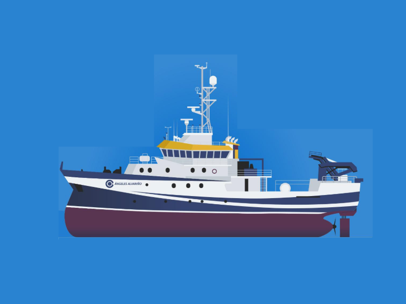 El 24 de febrero de 2012, el Instituto Español de Oceanografía (IEO) botó el buque de investigación "Ángeles Alvariño". Un barco dotado de tecnología puntera que continúa la labor de exploración que ella comenzó, recordándonos en cada expedición la importancia de su figura y su valentía para navegar a contracorriente. Este buque tiene su base en el puerto de Vigo, como IRISANA.